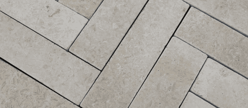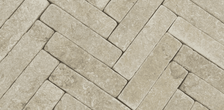 With its yellow / beige tones , and occasional , natural fossil appearances , this Egyptian Limestone Herringbone (Slim Sett) look , ensures lasting beauty , for your outdoor area.