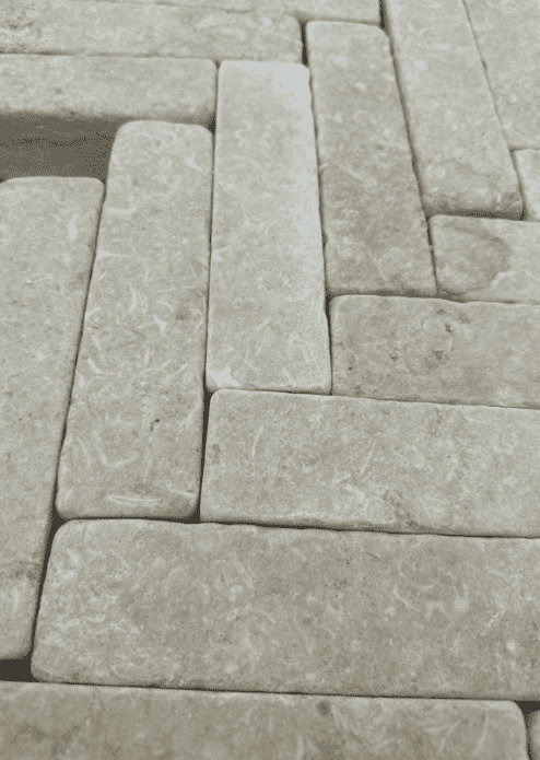 FULL 13m2 crate Jerusalem Cream Tumbled Limestone Slim Setts (Herringbone Style) approx 200mm x 50mm x 30mm @ only £480.87 per m2 inc VAT , which equates to a staggeringly low price of £36.99 per m2 .
