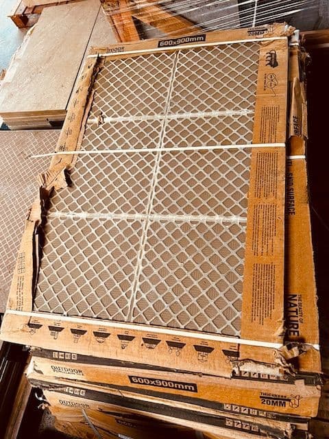 As per the listing / images , some of these tiles will possibly be damaged , suffering slight chips / scratches etc , where it has been moved around our warehouse , some are ex showroom pieces that still have labels on etc etc , but this is reflected in the price that the stone is being offered at and its a perfect quantity for a small patio area - it could be worth purchasing these with a little wastage in mind .