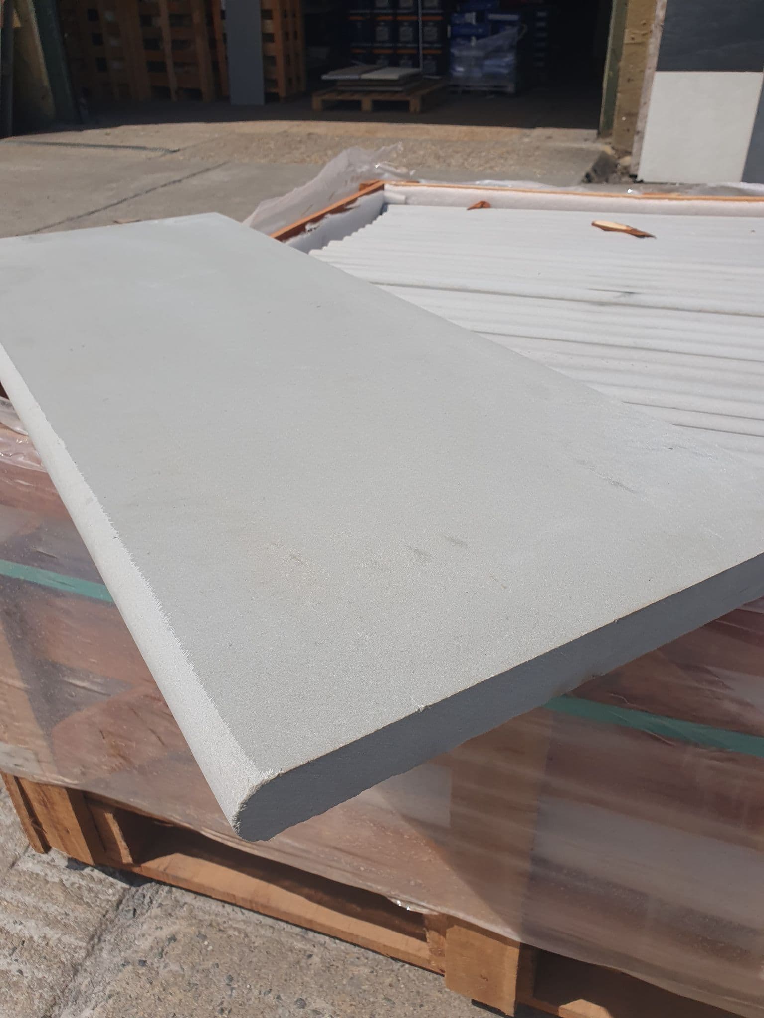 Kandla Grey Honed & Sawn Sandstone Bullnosed on Two long Edges 900 x 350 x 30 mm.