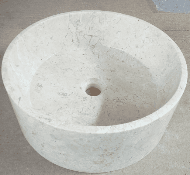 As these sinks are carved from natural stone there can be variation in depth of shade/colour/veining , each sink is totally unique in that respect , and will not necessarily match the image shown in that regard .